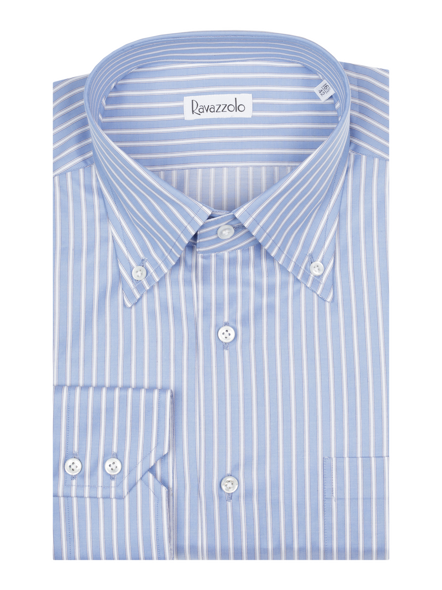 Сорочка, Ravazzolo, в полоску, пуг. на вороте (300, Синий, 44)