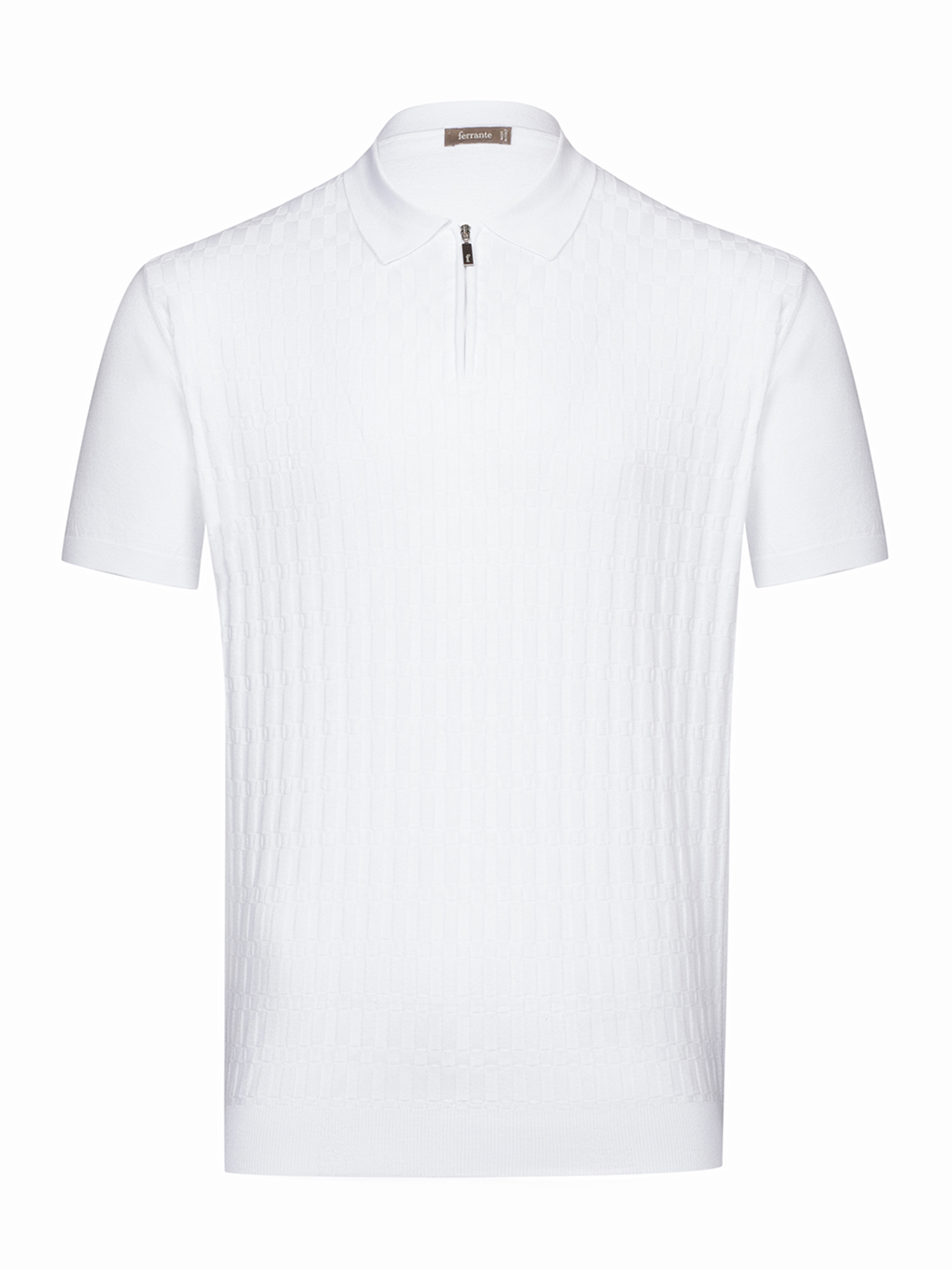 Фактурное поло с шахматным мотивом марки A.Ferrante гармонично дополнит повседневный образ с джинсами или станет достойной заменой рубашке в офисе с нестрогим дресс-кодом. Модель выполнена из тонкого трикотажа из длинноволокнистой хлопковой пряжи премиум сорта Pima, который намного мягче и прочнее обычного, обеспечивает комфорт телу и не пилингуется.