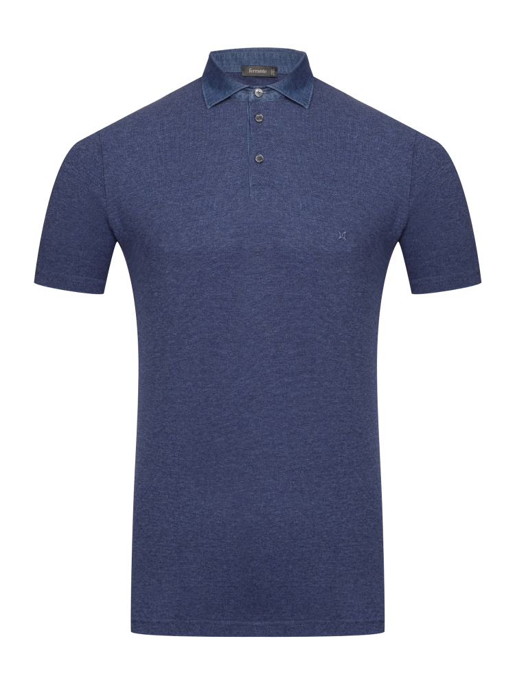 Дизайнеры марки A.Ferrante несмотря на лаконичный классический крой привнесли в модель поло индивидуальность и выразительность. Воротник и подпуговичная планка, выполненные из джинсовой ткани и сам трикотаж - длиноволокнистый гладкий хлопок, получивший специальную состаренную обработку, добавляют харизматичности образу.