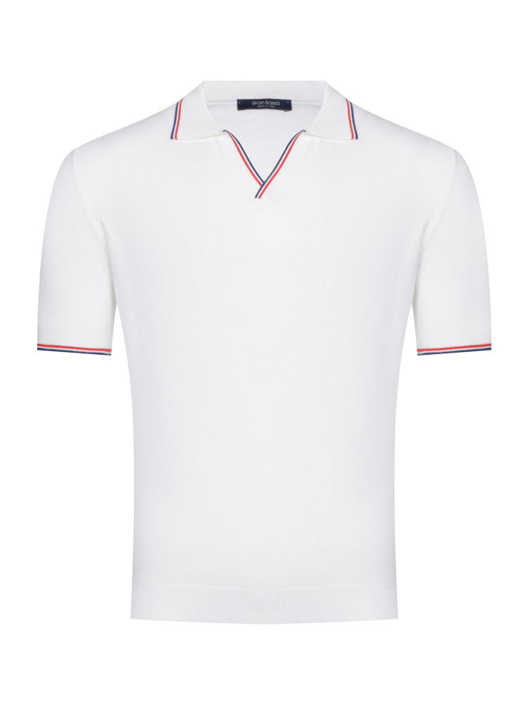 Полосатый мотив в поло коллекции Gran Sasso не только создаёт огранку силуэта, но и добавляет индивидуальности образу, подчёркивая его элитарность и изысканность. Застёжка поло заменёная на v-вырез зрительно стройнит и вытягивает силуэт. Материал изделия длиноволокнистый хлопок в сочетании с эластичными волокнами приятно и комфортно облегает формы тела.