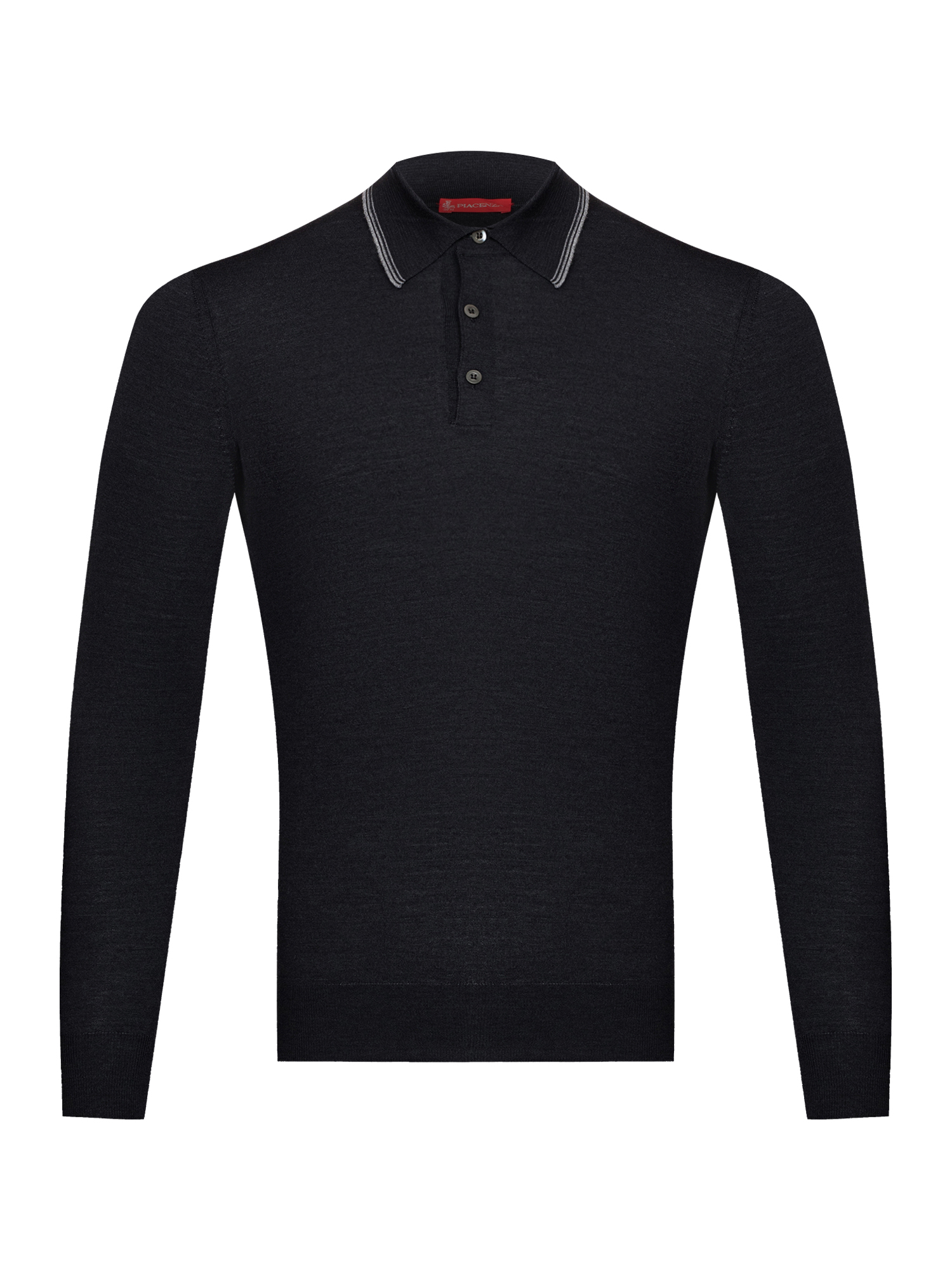 В коллекцию Piacenza вошло поло с длинным рукавом и воротником с акцентированной контрастной полосой вдоль отлёта, придающей выразительности образу. Мастера выполнили модель из 100% шерсти, которая благодаря эластичной трикотажной вязке хорошо тянется и отлично садиться на фигуру. Шерсть имеет сертификат Международного секретариата шерсти Woolmark (ISU) и гарантирует качество материала.