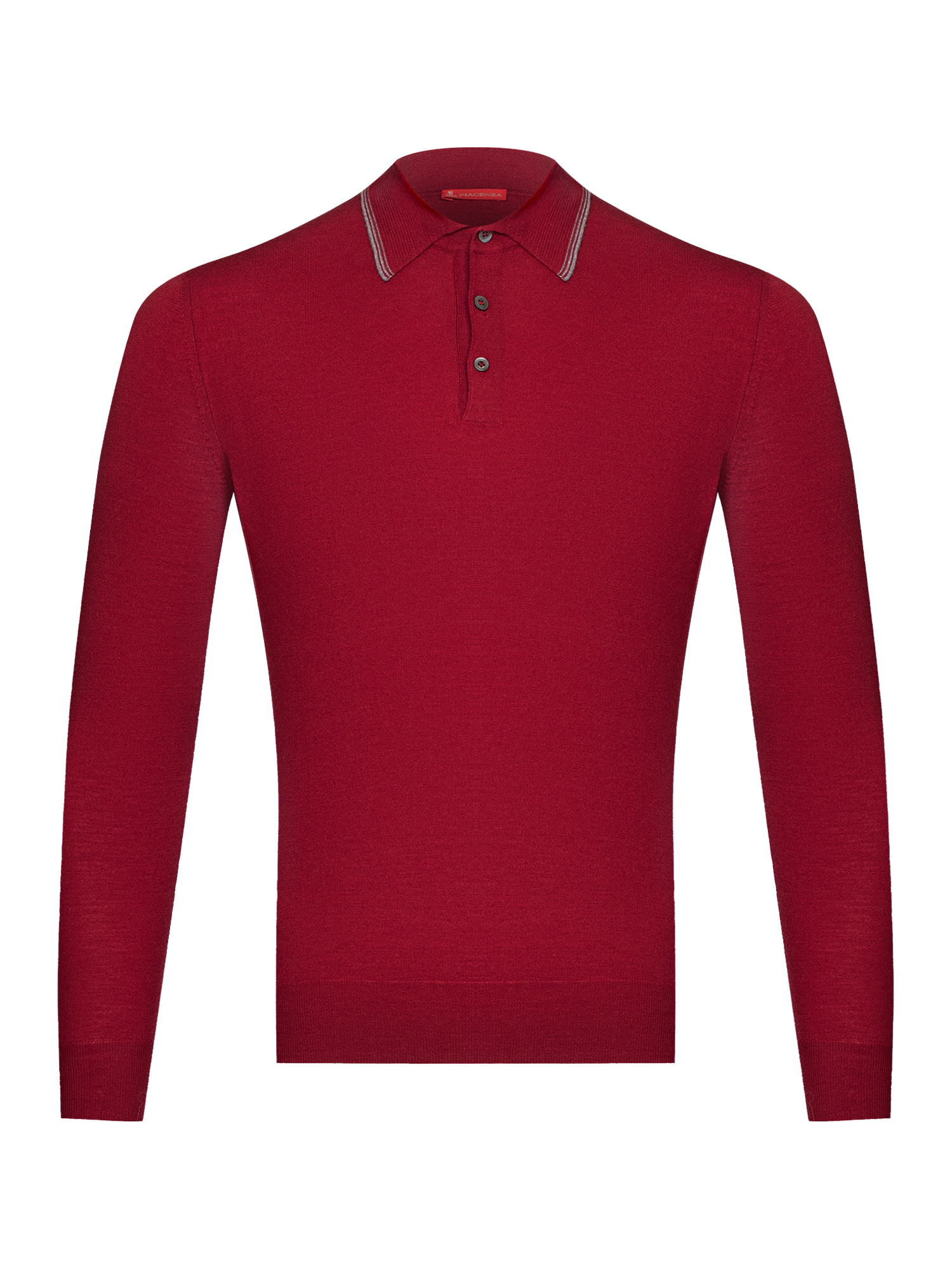 В коллекцию Piacenza вошло поло с длинным рукавом и воротником с акцентированной контрастной полосой вдоль отлёта, придающей выразительности образу. Мастера выполнили модель из 100% шерсти, которая благодаря эластичной трикотажной вязке хорошо тянется и отлично садиться на фигуру. Шерсть имеет сертификат Международного секретариата шерсти Woolmark (ISU) и гарантирует качество материала.