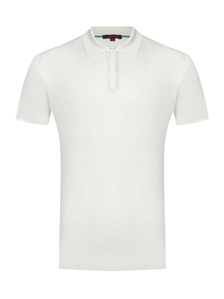 Поло из весенне-летней коллекции Torras имеет расслабленное настроение, благодаря прямому силуэту и трикотажу из длиноволокнистого мягкого тонкого хлопка. Декорирование воротничка и манжет текстурированной строчкой имитации ручного стежка добавляет модели выразительности и индивидуальности.